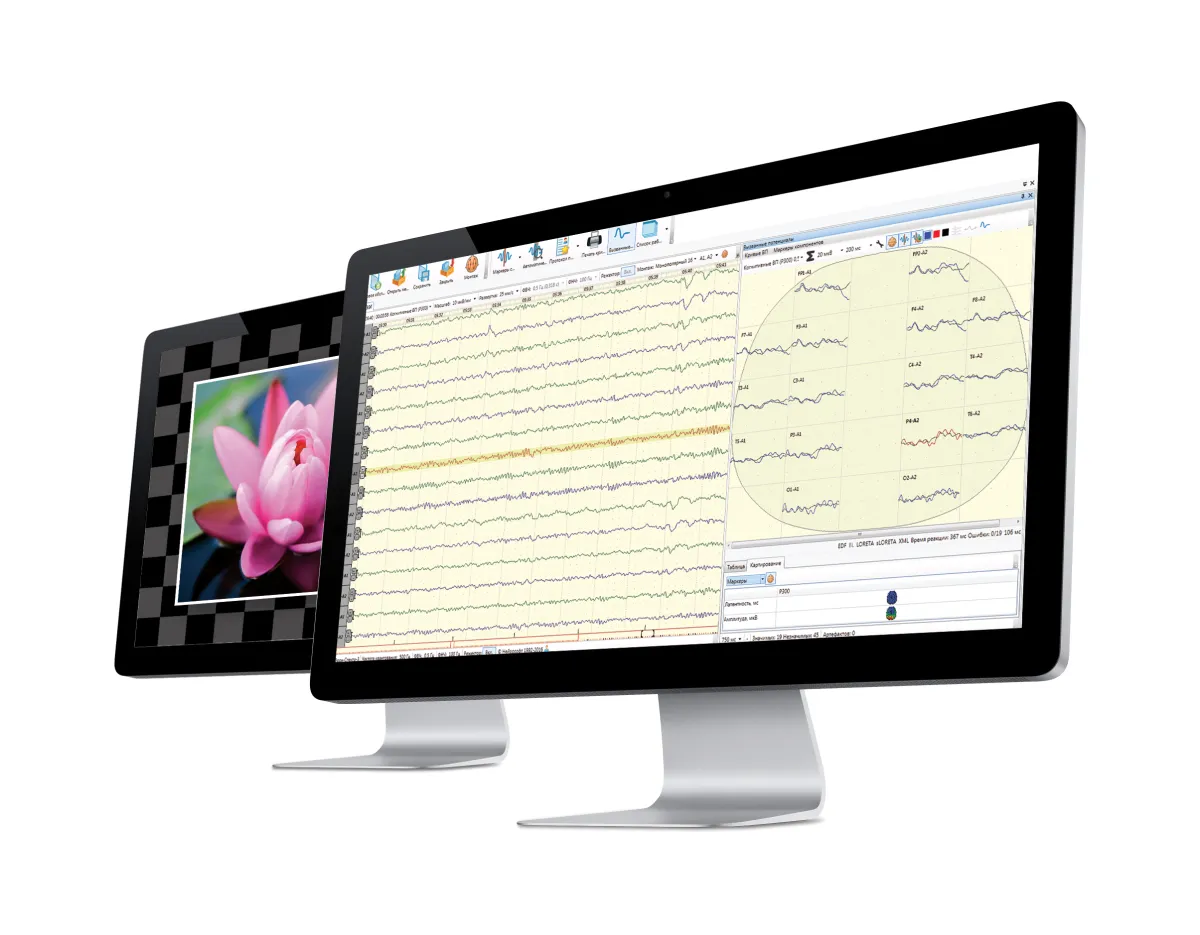 21 canales de EEG + 7 canales para registrar cualquier señal fisiológica, desde EOG hasta EP de latencia corta.